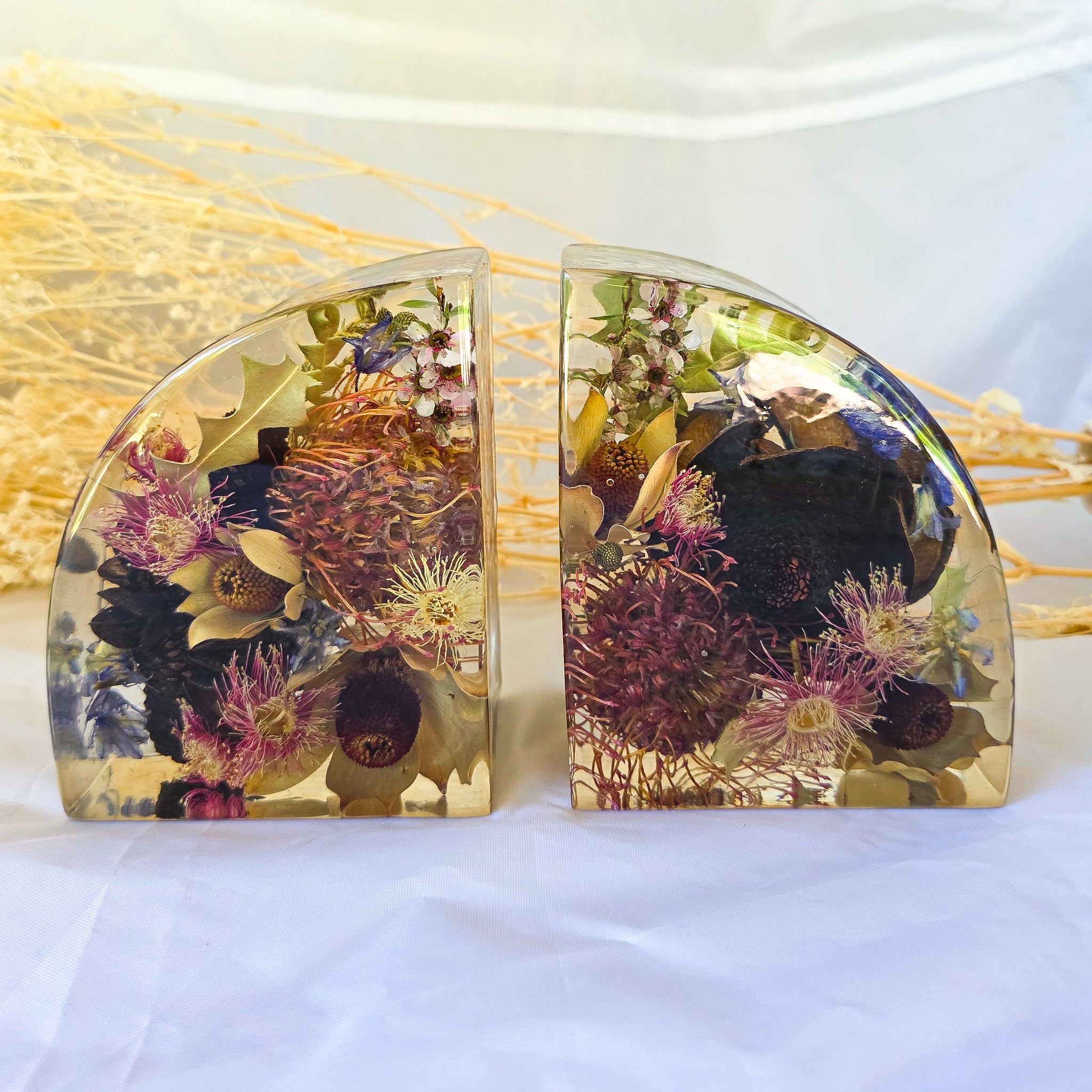 All natives and flowers are collected in the South West and dried in Busselton. The resin I use is a slow curing high quality resin. It's UV stabilised and food save.